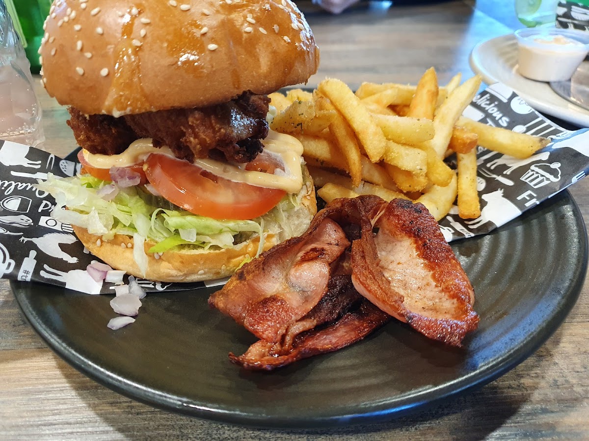 Speaking of the menu, M Kitchen and Espresso offers a diversity of options beyond the usual café staples. Coffee ranges cover the classics — espresso, flat white, and chai latte — all served alongside baked treats and hearty meals. Banana bread and avocado smash are popular picks for a light bite, while those craving something more filling can opt for dishes like the buttermilk fried chicken or the Stars and Stripes burger paired with crispy waffle fries. The brekkie wrap with spinach, bacon, and egg is another solid choice for a satisfying start to the day.